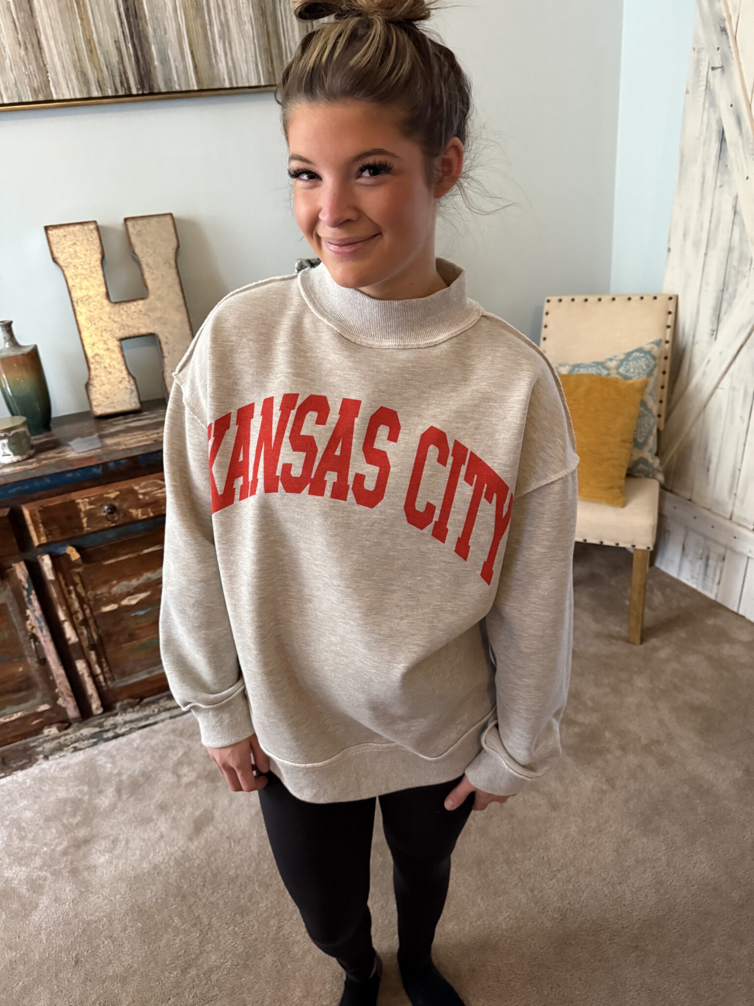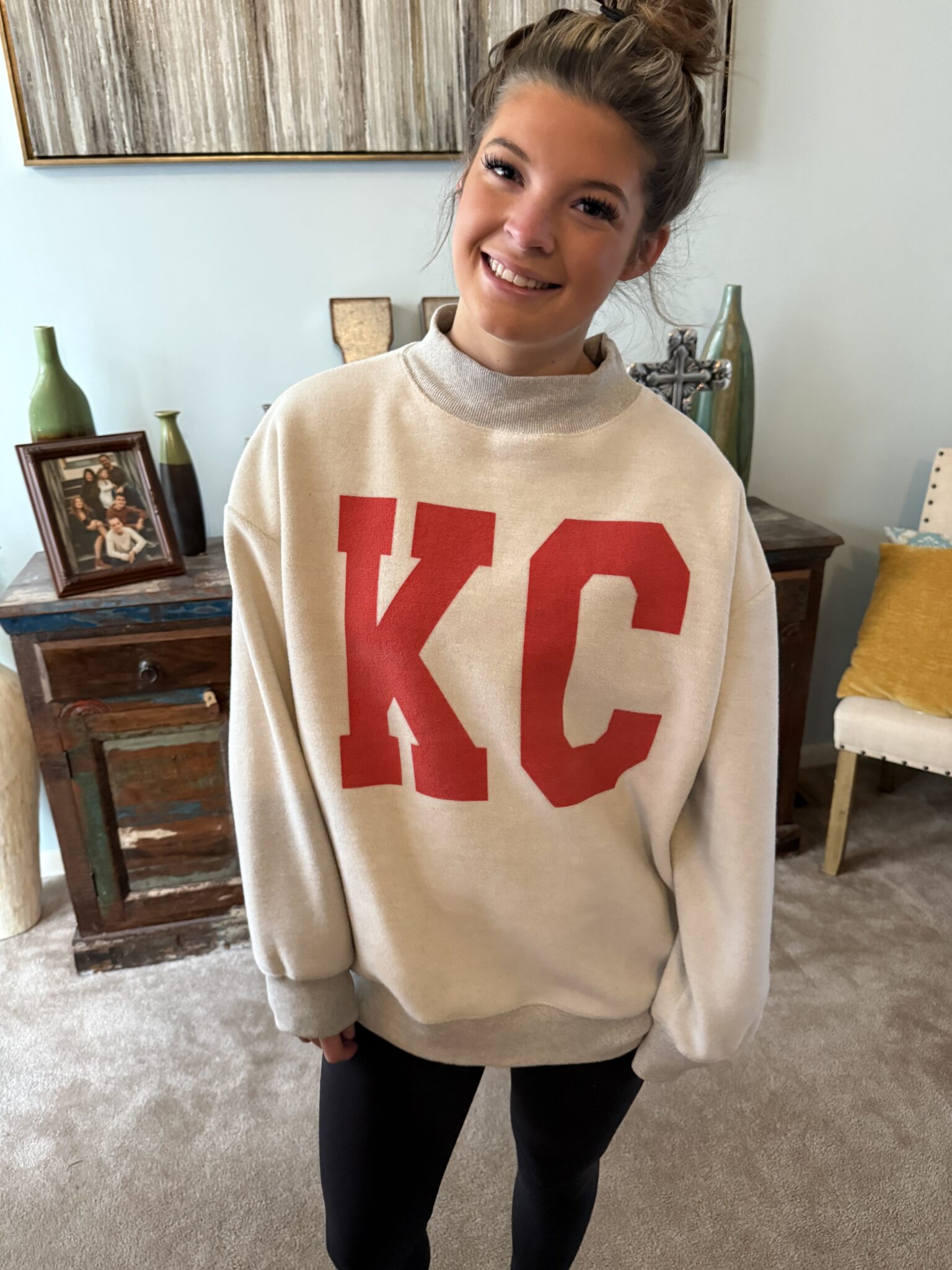 oversized fit model wearing a medium